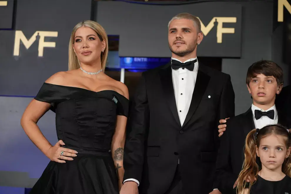 Wanda Nara, Mauro Icardi, e hijos en los Martín Fierro 2023. - Créditos: Telefe Prensa.