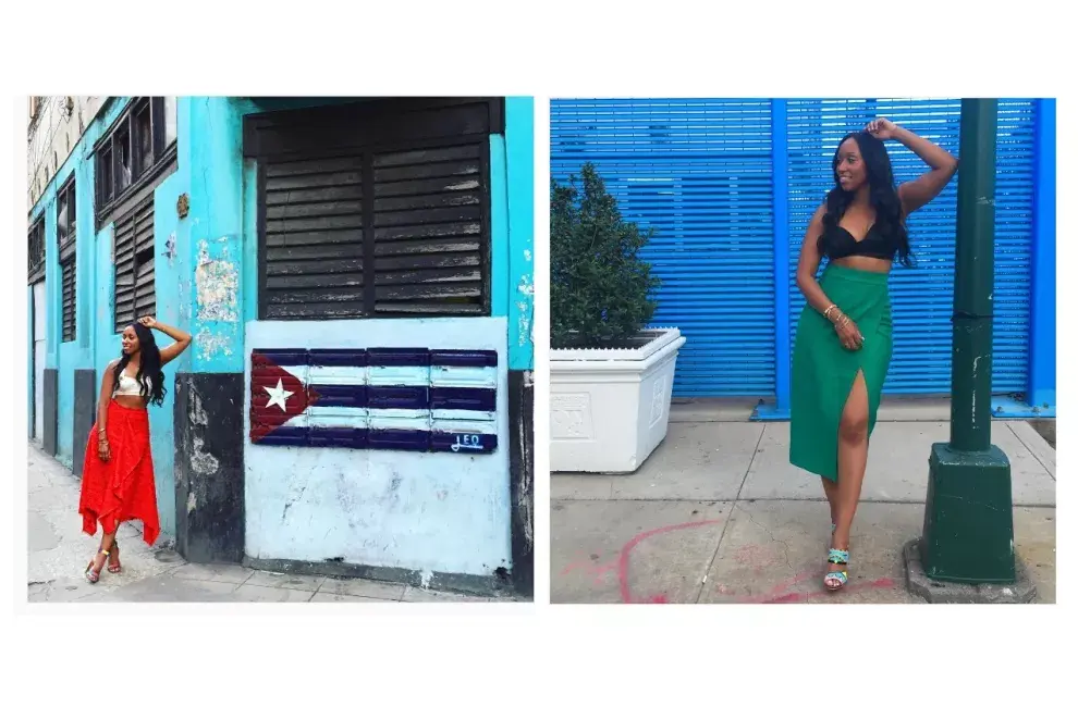 El segundo outfit se presta para salidas nocturas y veraniegas, además de brindarle color y sensualidad al conjunto, resalta la figura femenina.