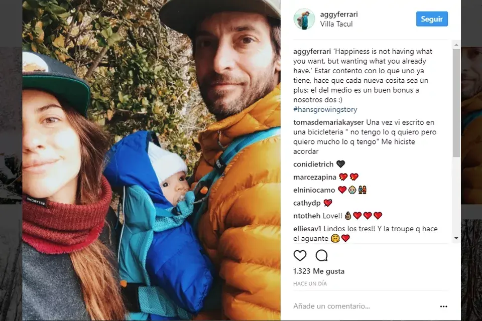 La argentina Agustina Ferrari es una aventurera que le gusta recorrer el mundo. Junto a su pareja arrancaron los viajes "siguiendo alguna pasión, algún deporte para practicar, o alguna inquietud", cuenta en su blog donde se la ve practicando diferentes deportes, entre ellos el running, que es uno de sus preferidos. Los dos son freelancers y en este momento acaban de empezar el primer viaje con su bebito Hans de casi tres meses. ¡Toda una aventura!