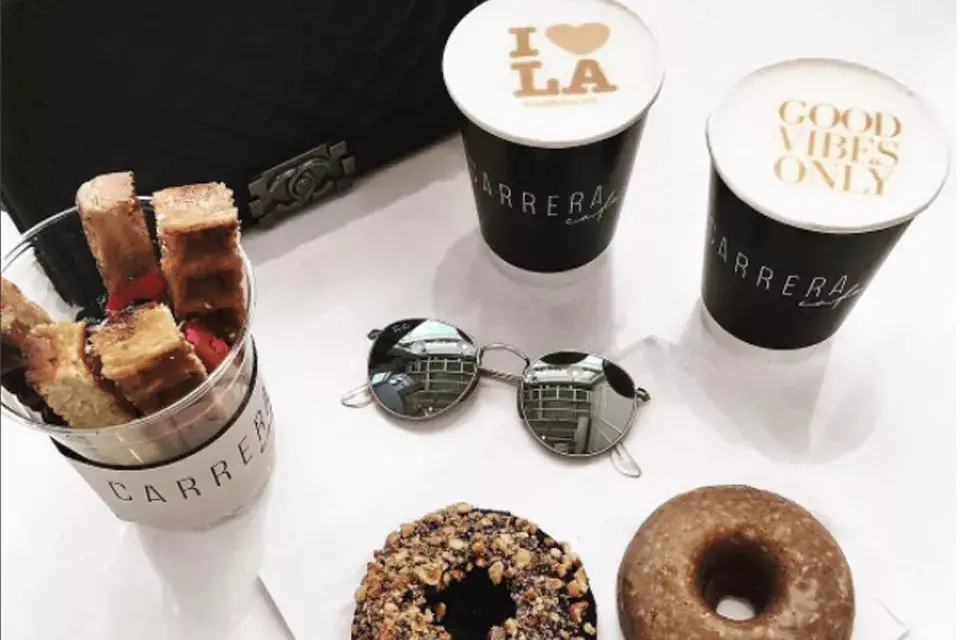 The Carrera Cafe, en Melrose Avenue, en Los Ángeles, California, sirve cafés, ensaladas, sandwiches, jugos, licuados, cositas ricas para picar y muchas opciones más. Pero su gran destreza consiste en las creaciones artísticas de su latte que exhiben, entre otros temas, figuras de animales, dibujos animados, de sitios históricos -como la Torre Eiffel en París-, frases con mensajes positivos (No te rindas o sólo buenas vibras son algunos ejemplos), incluso hay diseños para las fanáticas de Louis Vuitton y los rostros de algunos de los actores de Hollywood más famosos del momento.