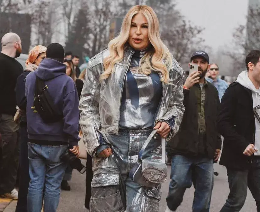 En los últimos años, el influencer londinense ha recreado a varias celebrities de Hollywood con sus extravagantes looks. En esta oportunidad, se lució como Jennifer Coolidge en el desfile de Diesel, en Milán.