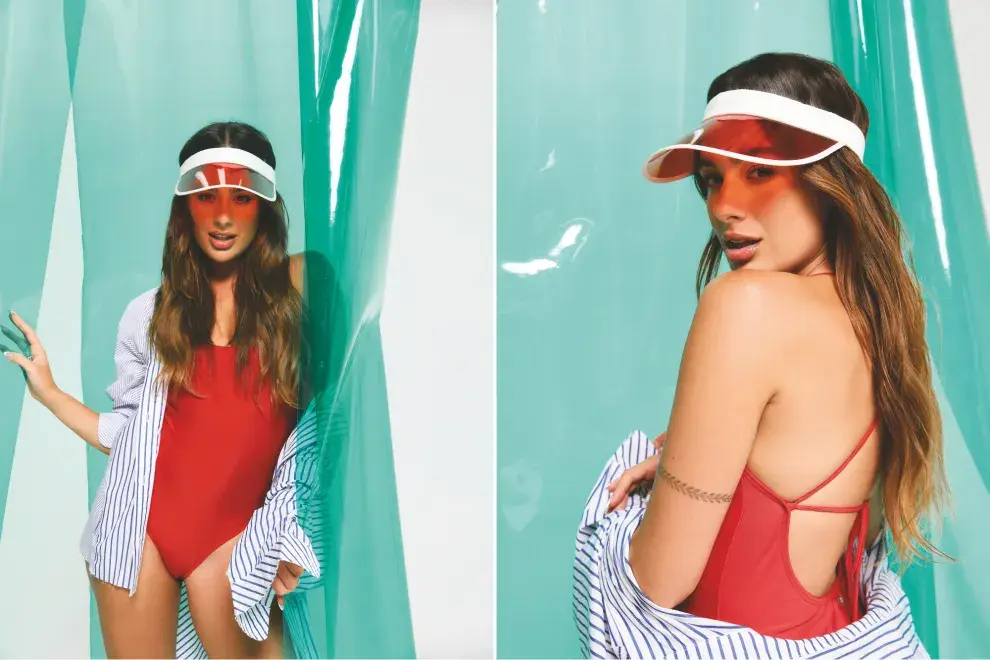Flor Jazmín Peña: TRAJE DE BAÑO (THE ANN WAGNER), BERMUDA DE DENIM (LAS PEPAS), SANDALIAS (PRÜNE). - Créditos: Mica Bianchi