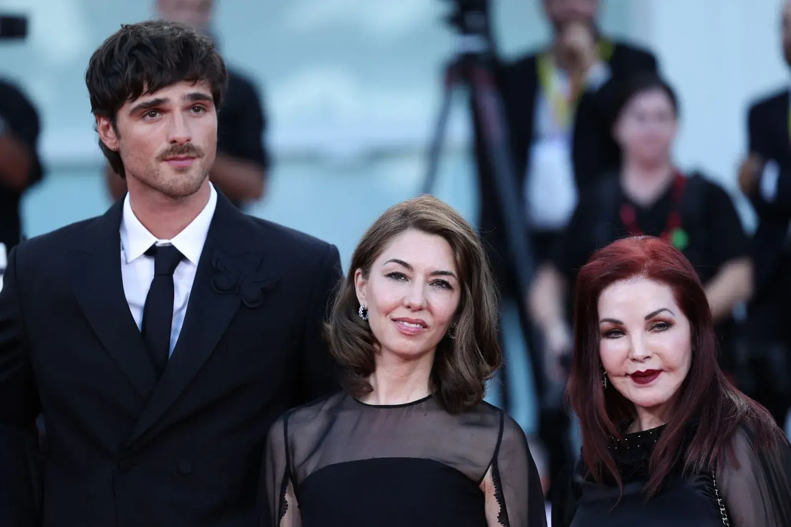 Jacob Elordi, Sofia Coppola y Priscilla Presley, en la presentación de la película en el Festival de Venecia. - Créditos: Getty.