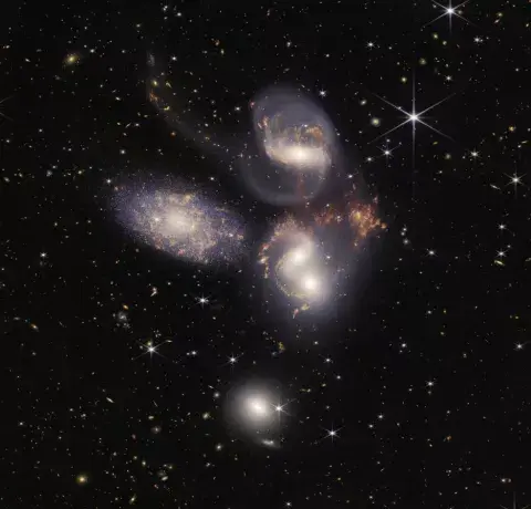 Cinco galaxias en una danza cósmica - Créditos: Telescopio espacial James Webb - NASA