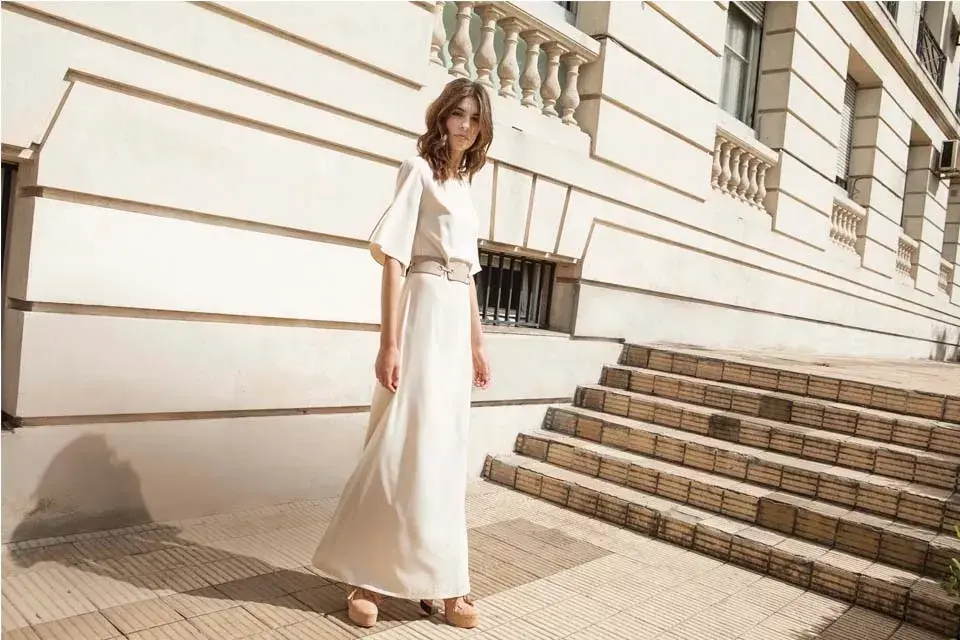 Vestido (Roma Renom, $4360), zapatos (Ricky Ssarkany, $5190).