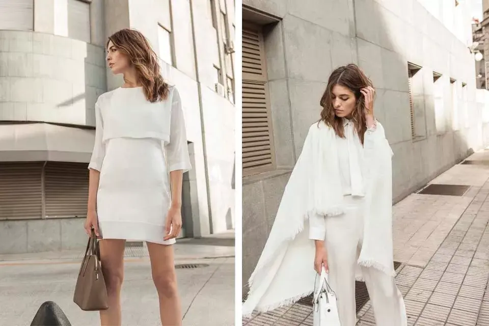 Izquierda: vestido (Giesso, $2900), cartera (Lacoste, $4600). Derecha: camisa con lazo (Yagmour, $900), pantalón (Giesso, $2590), pañuelo (India Style, $350), cartera (Vitamina, $4200).