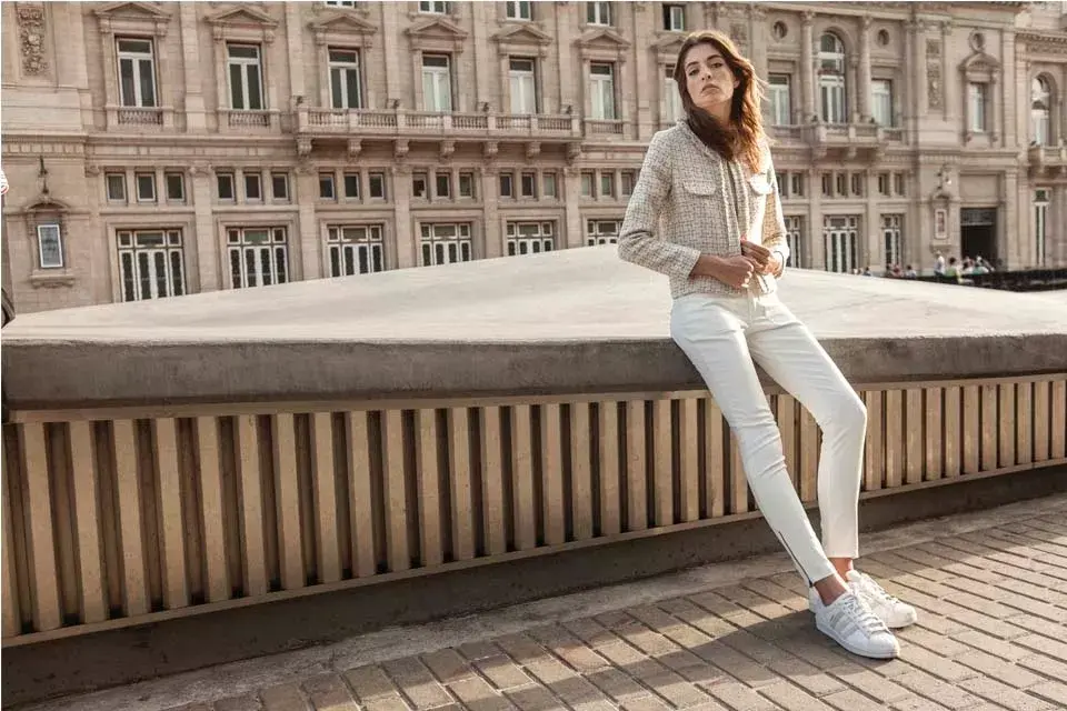 Chaqueta (Wanama, $4200), top (Las Pepas, $700), pantalón (Vitamina, $2100), zapatillas (Adidas, $1300).
