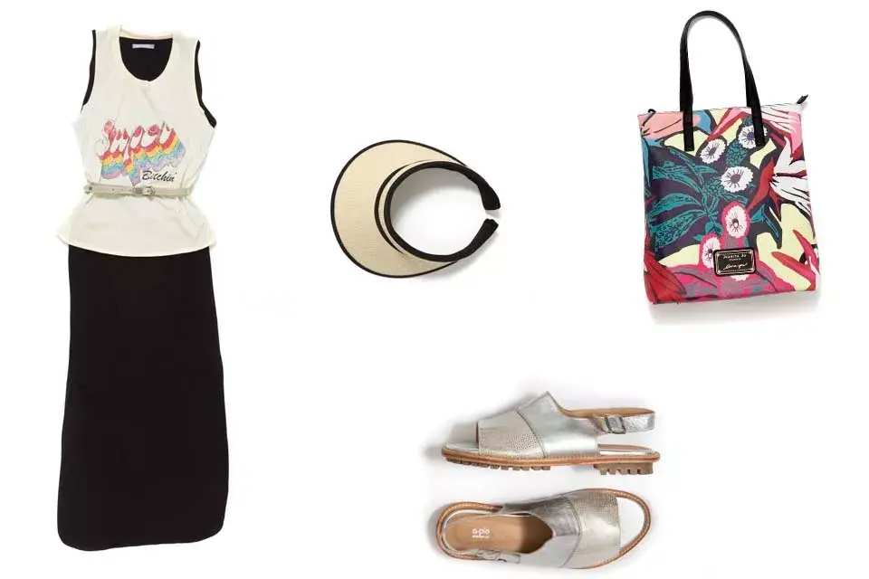 Sudadera, Billabong, $330. Cinturón, Sail, $260. Vestido, La Dolfina, $2590. Visera, TodoModa, $150. Bolso, Juanita Jo, $1800. Sandalias, A Pie, $1850.