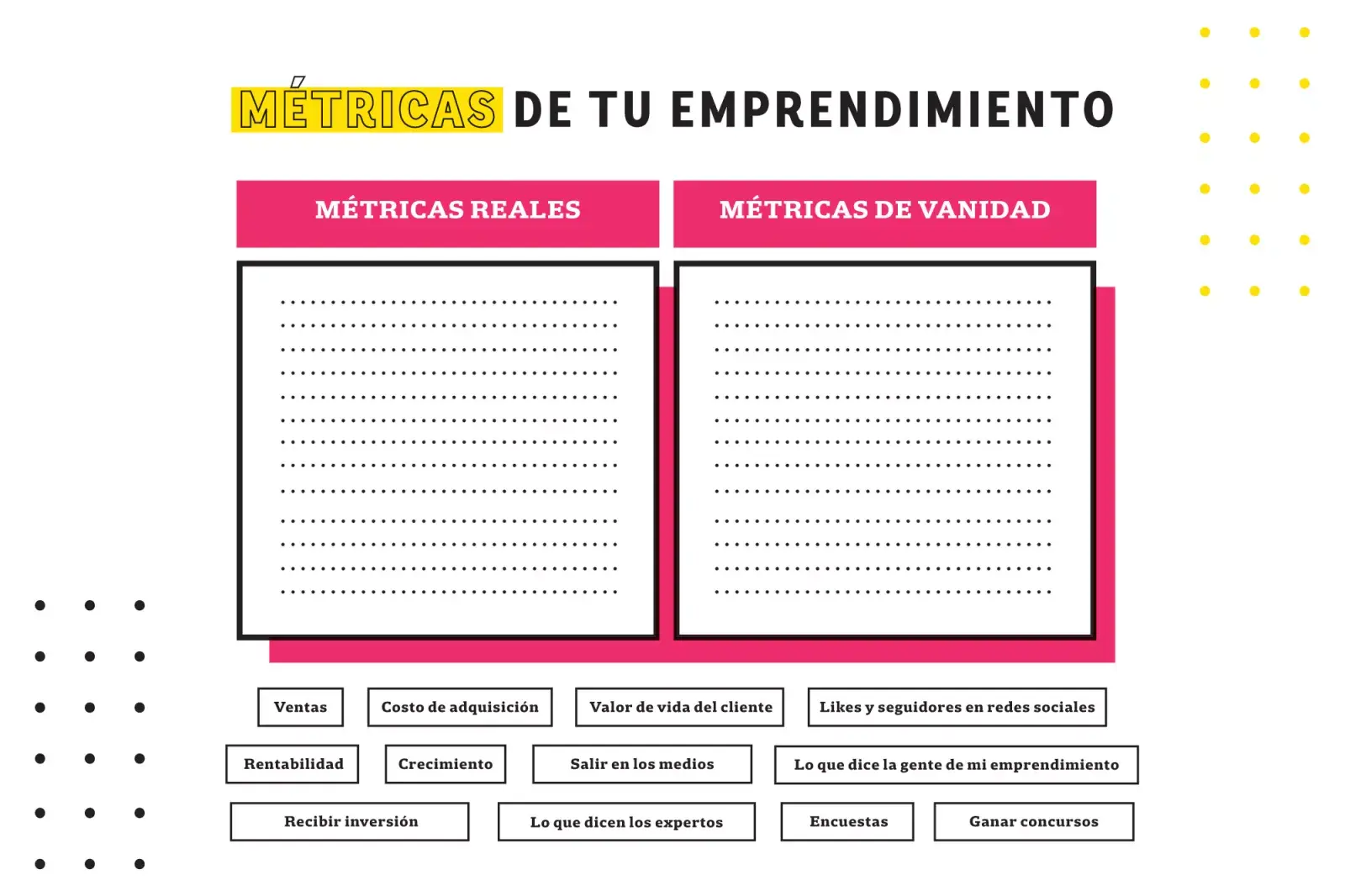 Identificá en el cuadro que te compartimos qué tipo de métricas es cada una de las que nombramos abajo. Acordate que la mejor manera de medir la salud de tu proyecto es dejar de lado las métricas de vanidad y centrarte en las métricas reales.