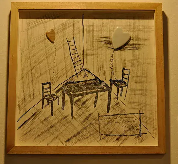 Sobre la Obra: Esta obra simboliza el cafecito como excusa para pasarla bien y decirnos cosas lindas, no solo ir a tomar un café cuando tenemos que hablar seriamente. "¿Tenemos 10 minutos? Vamos a volar. Hablemos de planes, de deseos, de cosas que nos hagan transitar los espacios más elevados de la existencia. El café no es un ancla para quedarnos en una silla mientras hablamos de cosas serias", explicó Giménez.