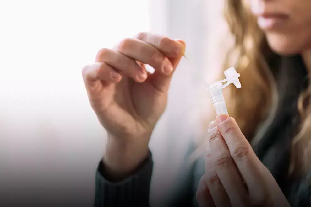 Te hacés la prueba mediante un hisopado nasal o la toma de una muestra de saliva (trae instrucciones). Los menores de 14 años deben estar acompañados de un adulto.