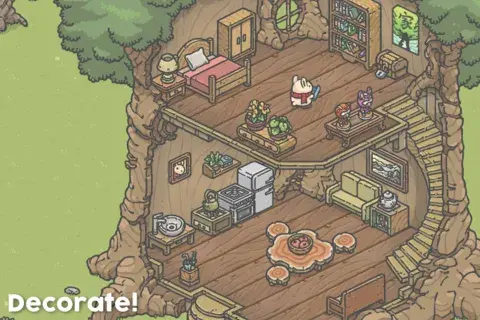 La idea es que Tsuki pueda ir sembrando y cosechando zanahorias (esto significa ir obteniendo monedad en el juego), y desbloquear nuevos amigos, lo que permitiría seguir avanzando en el camino y descubrir nuevos objetos decorativos para el hogar.