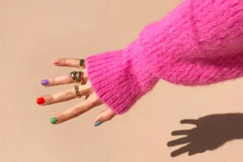 Las uñas de diferentes colores también funciona súper bien con tonos brillantes. - Créditos: Gentileza de Pinterest.