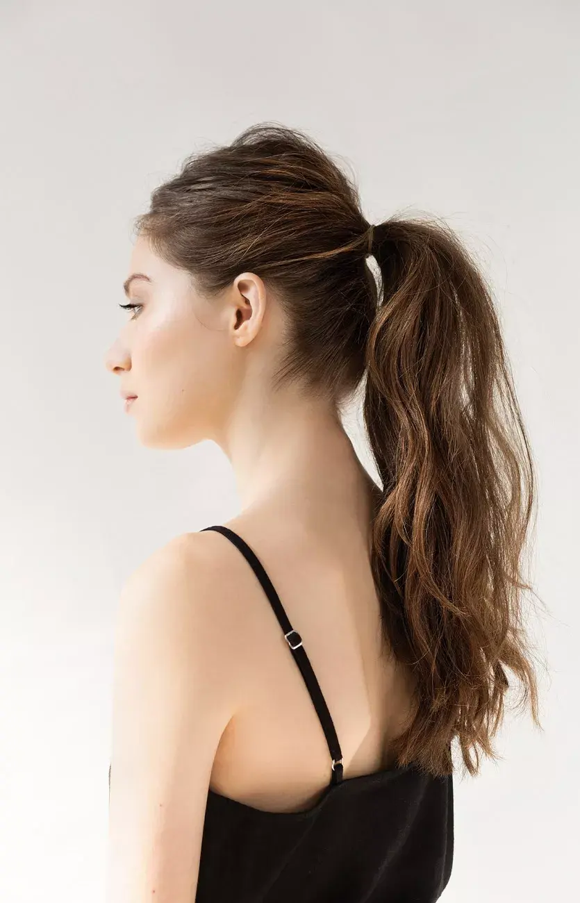 La colita alta es un peinado clásico, cómodo y fácil. Para darle algo de volumen, antes de peinar podés usar mousse o spray texturizante. Una vez que aseguraste el pelo con la gomita, aflojá un poco los mechones de la cresta para dar más volumen a la parte de arriba de la cabeza. Soltar algunos pelos de los costados le da al look un aire casual.