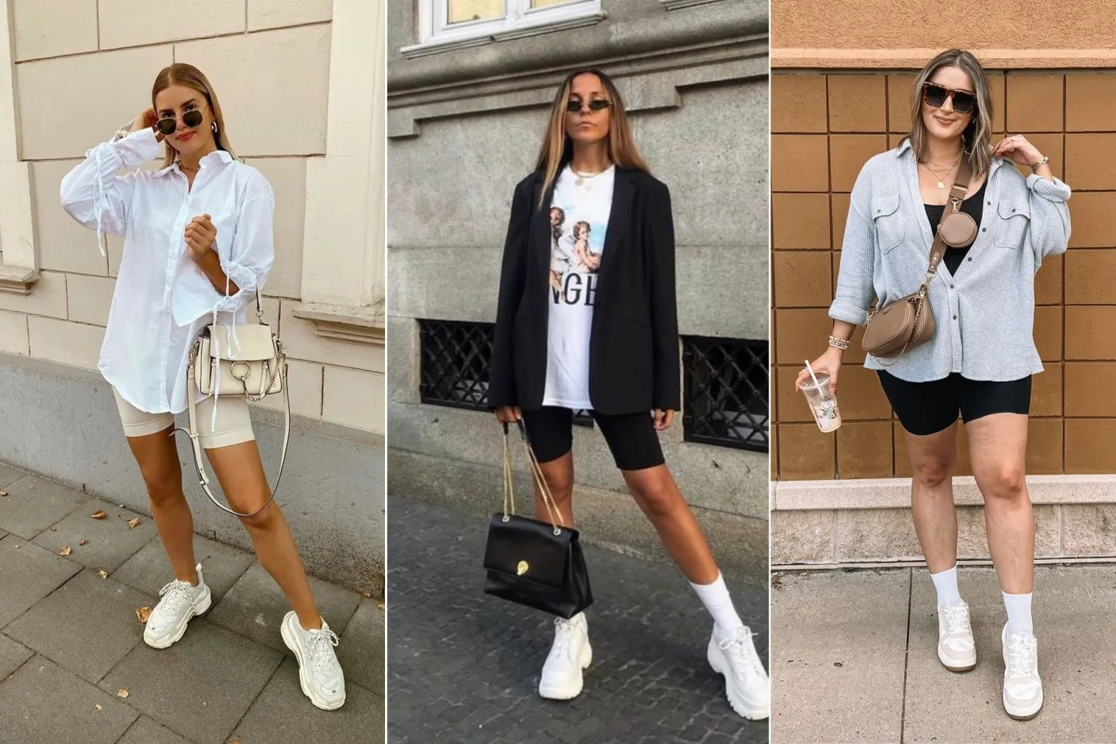 Si querés subir un poco el nivel, combiná tus bikers con un blazer o una campera oversize. Podés llevarlo sobre un top básico o un crop top para lograr ese mix entre lo sporty y lo sastrero que se ve tanto en el street style.