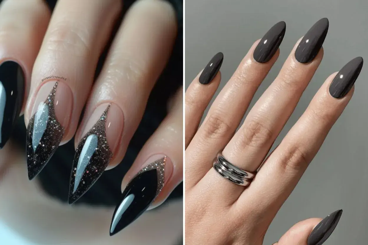 En forma stiletto, combinás el negro pleno con plateado y brillos. - Créditos: Gentileza de Pinterest.