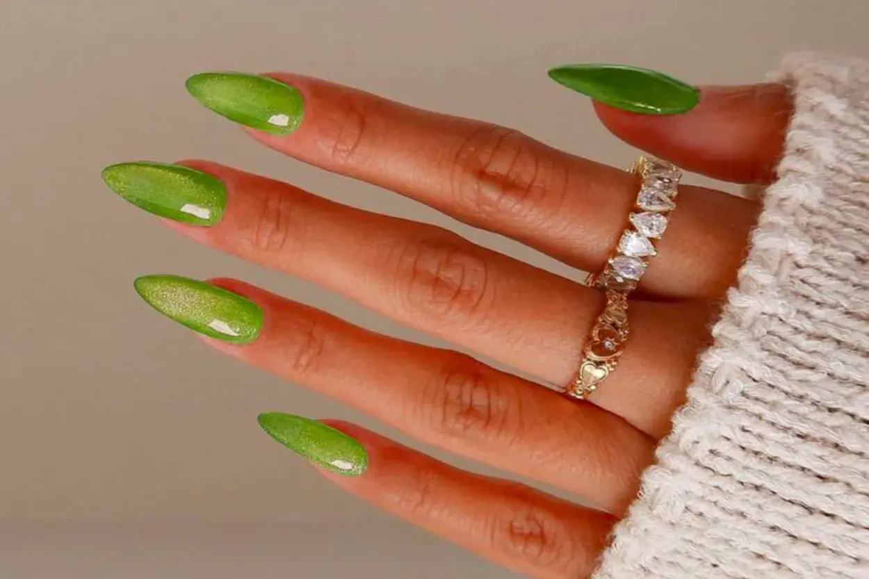 En un verde súper potente, las uñas metálicas son un fuego. - Créditos: Gentileza de Pinterest.