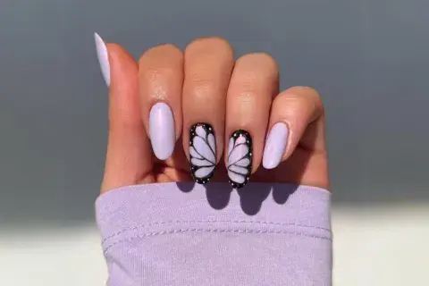 Creando un diseño continuo entre dos uñas, las mariposas están mega de moda. - Créditos: Pinterest