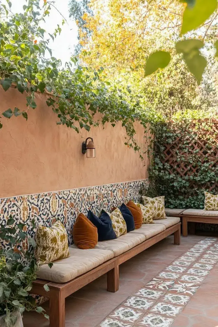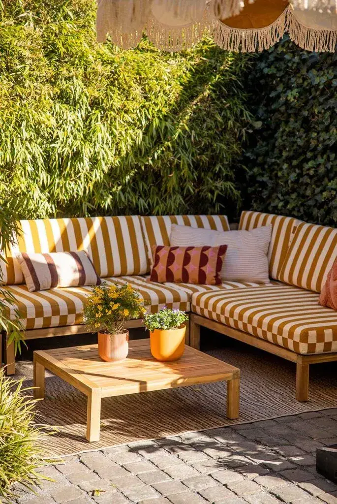 Almohadones, mantas livianas y alfombras de exterior son aliados clave para crear un espacio cómodo y atractivo. No hace falta invertir en piezas caras: podés reutilizar telas, fundas o incluso animarte a hacer tus propios diseños. Los textiles no solo suman color, sino que también ayudan a delimitar espacios y generar una sensación de “living al aire libre”.