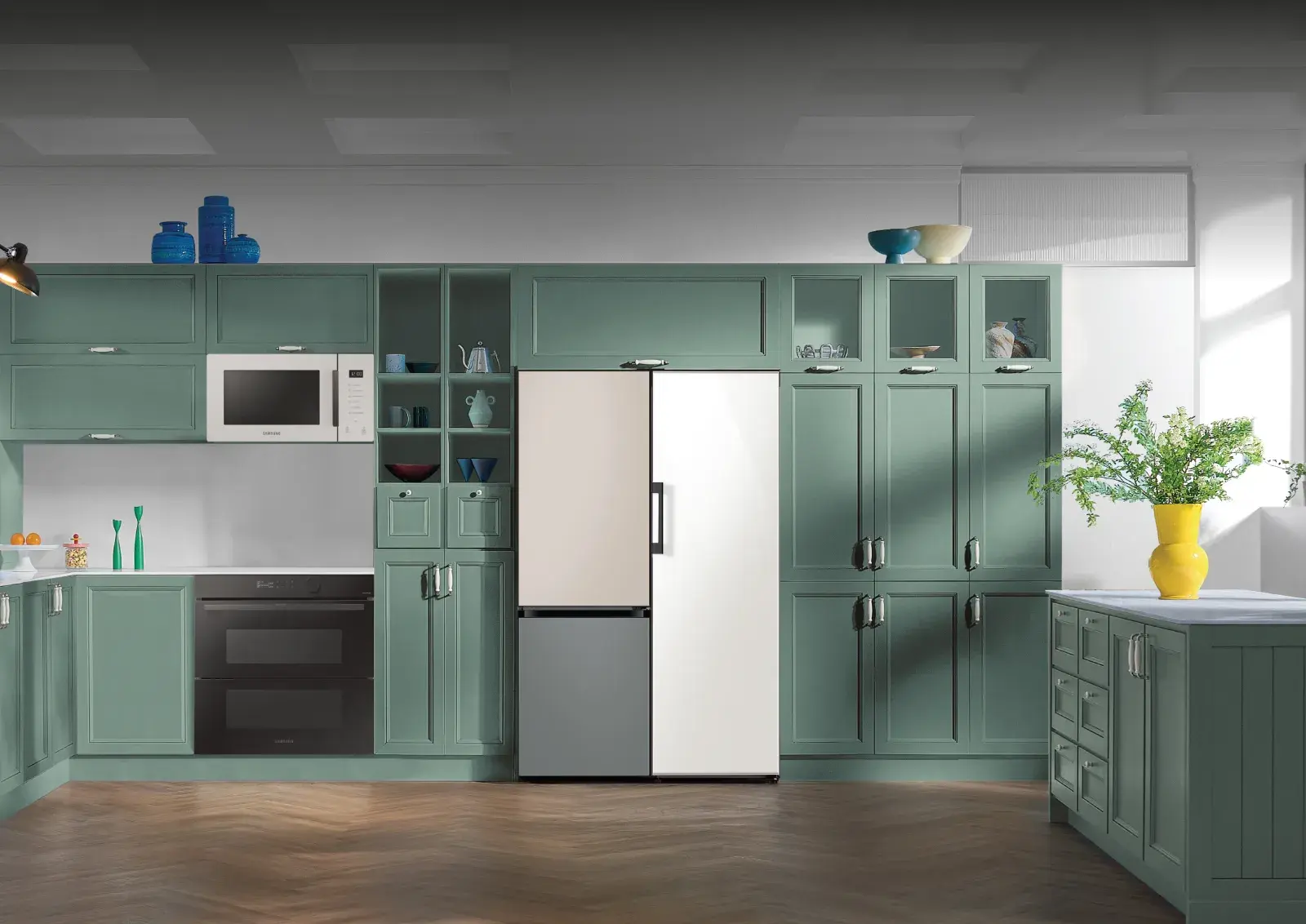 El concepto Bespoke significa “a medida” e incluye productos creados sobre la idea “Diseñado por vos, para vos”. Nació cuando la compañía lanzó dos heladeras modulables de freezer inferior y vertical. Ahora incorpora heladeras Side by Side (de doble puerta), hornos eléctricos, microondas y aspiradoras. Ya están disponbles en el e-store de Samsung y en tiendas oficiales.