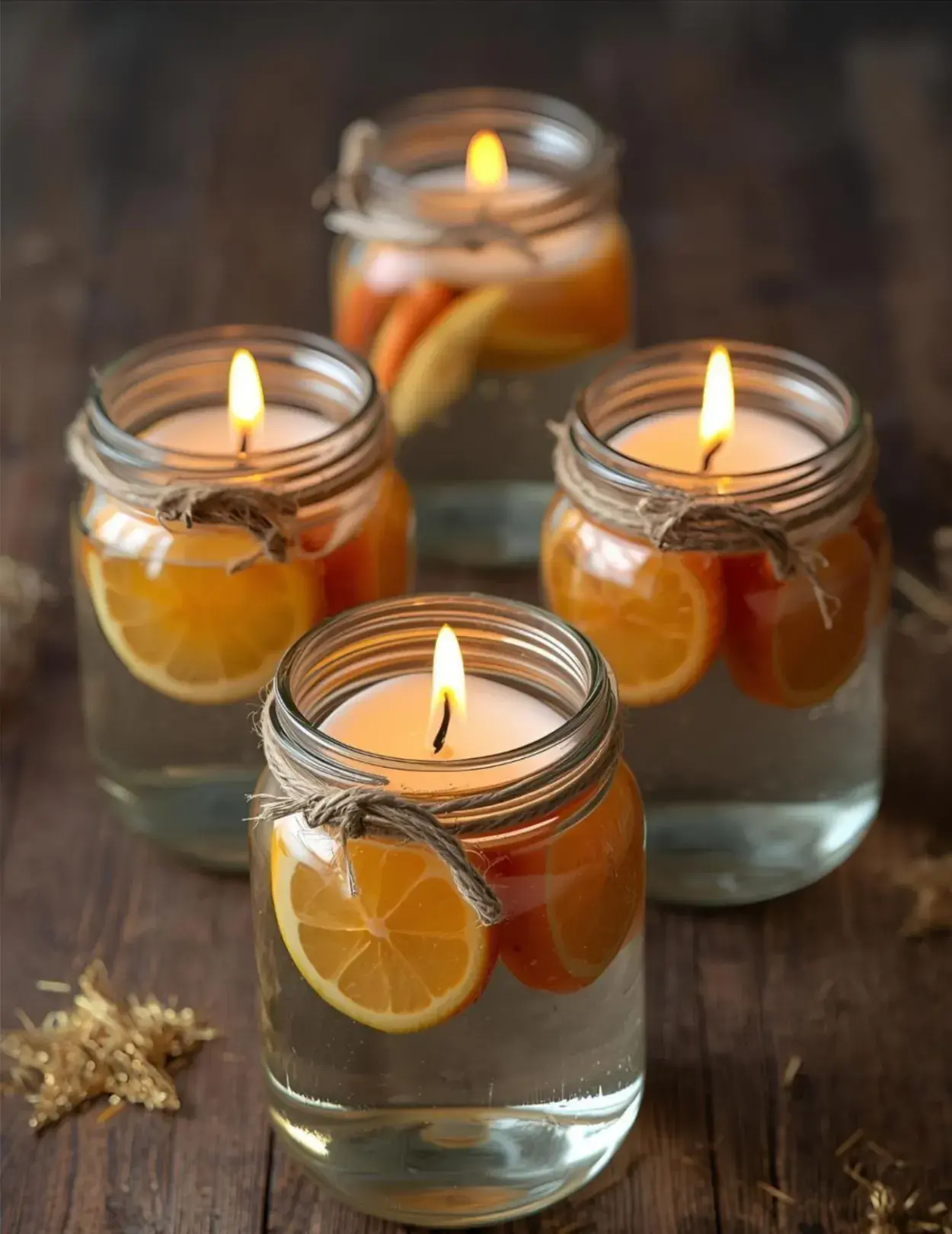 Usá un recipiente con agua. Colocá velitas flotantes y rodealas con rodajitas de naranja secas, ramas de canela y algunas hojas de pino. Aromatiza, decora y le da un toque cálido y natural a la mesa.
