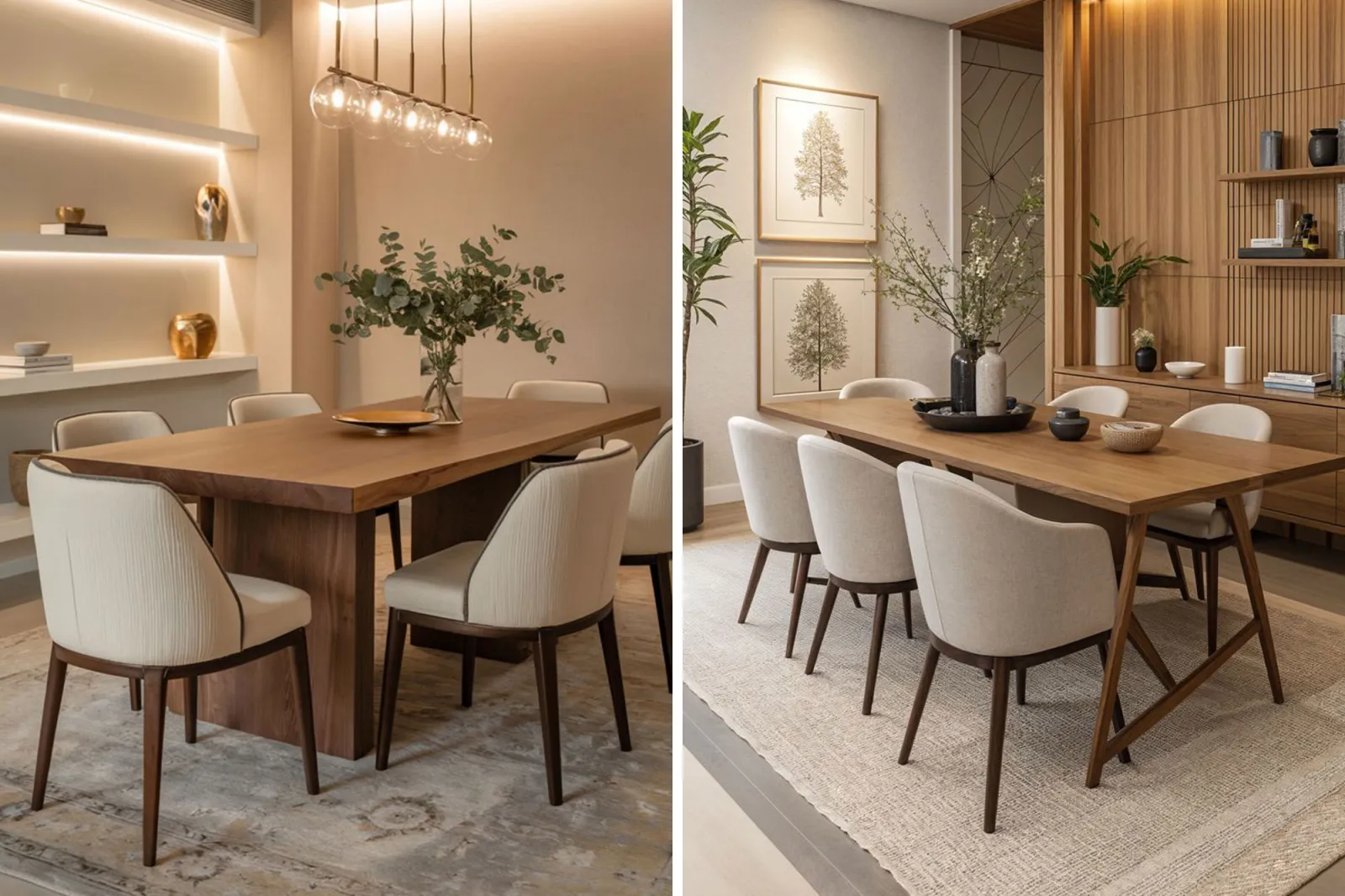 -Comenzá por la mesa: elegí un modelo de líneas rectas o forma suave, sin tallas, en madera natural o en blanco pulido.