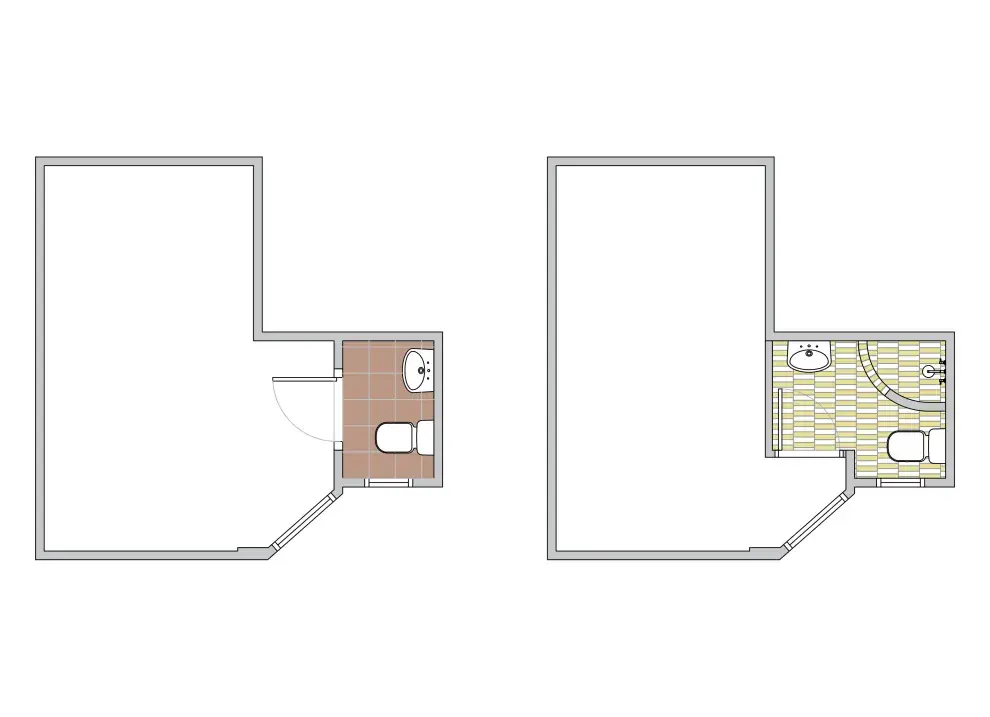 El cliente había pensado extenderse hacia el lateral del baño, rompiendo la pared en la que se encontraba la ducha y ganando espacio sobre la cocina. Esta solución era viable, pero engorrosa y quitaba espacio útil a la cocina. En lugar de hacer esto, le propuso avanzar 60 cm hacia el lado del dormitorio, y así ganó para el baño un espacio "muerto", ya que dada la distribución de la habitación no podía aprovecharse para otra cosa.