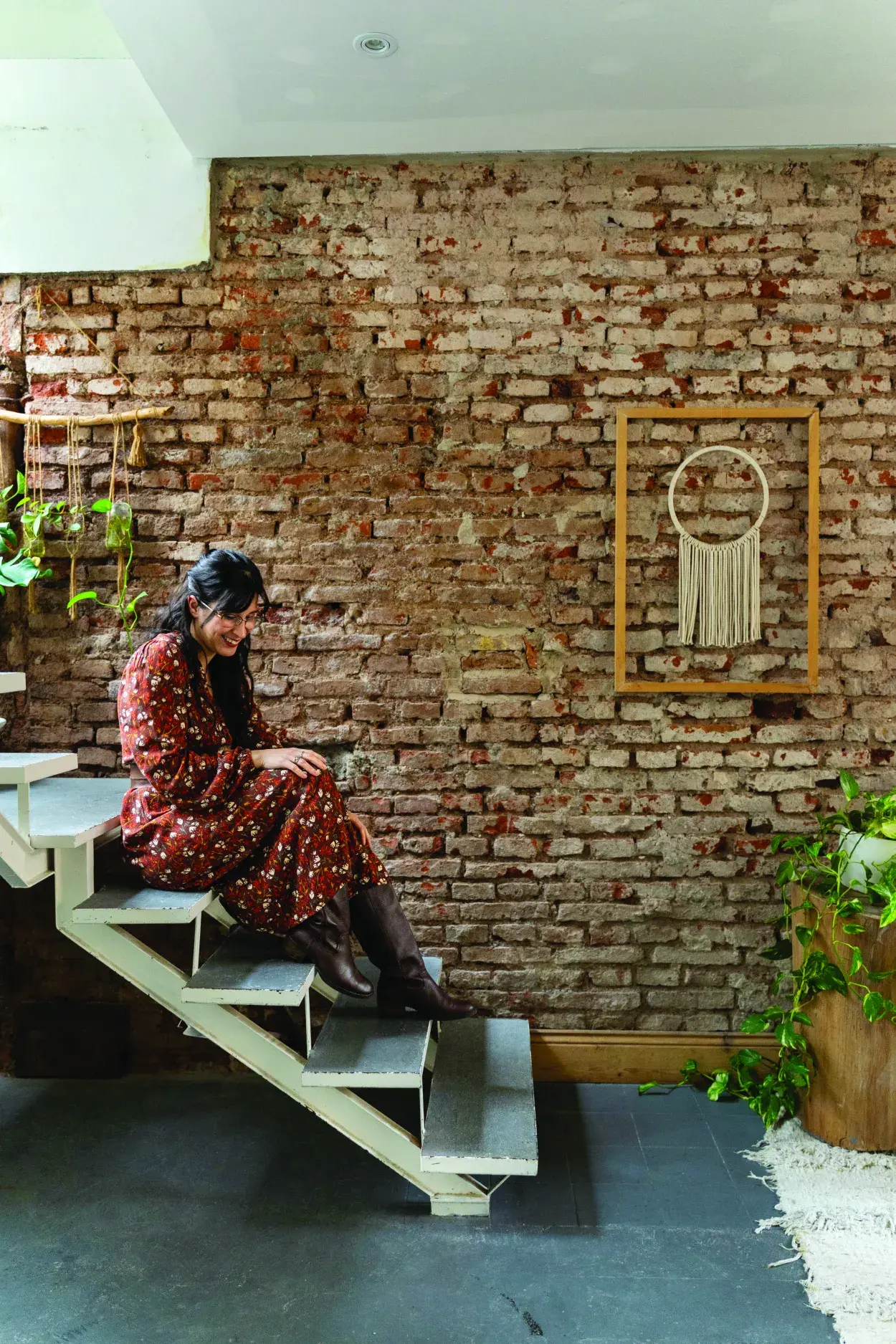 Al PH se accede a través de una escalera, que llega a un recibidor que decoró con un mueble antiguo, ¡que era una radio! La construcción tiene el típico estilo de las casas chorizo de principios del siglo XX: un pasillo largo y angosto comunica con las habitaciones; en este caso, playroom, cuarto de los chicos y dormitorio principal con baño privado y vestidor en un entrepiso. “Como tiramos paredes, ¡el espacio quedó muy luminoso!”, cuenta. La pared original de ladrillos a la vista, típica de la época, le da el marco ideal a este ambiente que ella usa un montón. En la reforma, además, sumaron la escalera que lleva a la terraza. su marido encontró en la calle y restauró.