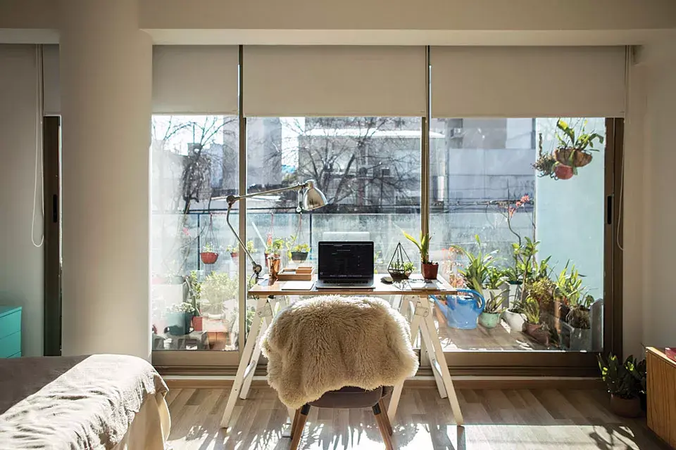 Un departamento de pocos metros alcanza perfectamente para dos: con espacios diferenciados y con un balcón que suma verde.