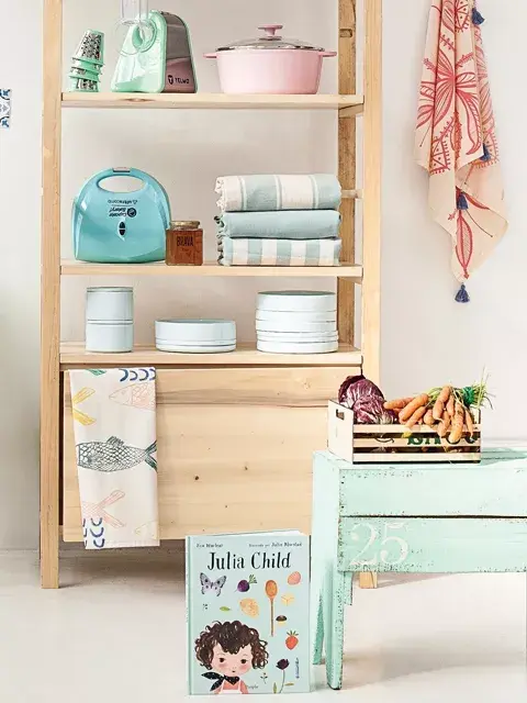 Cortador de alimentos, Yelmo, $1270. Olla, Essen, $4575. Cupcake maker,Ultracomb, $780. Miel, Brava, $70. Manteles, Arredo, $729. Plato, plato hondo y cuencos apilables, MeMo, $350, $400 y $290. Estantería “Francisco”, Encaja Muebles, $7375. Repasador, Depot, $180. Libro, Julia Child, Periplo, $290. Mantel, Pura House, $620. Limones, $33 (500 g), radicchio, $44 (400 g), zanahoria baby, $88 (500 g), todo de Jardín Orgánico. Banco-mesita de campo, Juan Terrenal, $720.