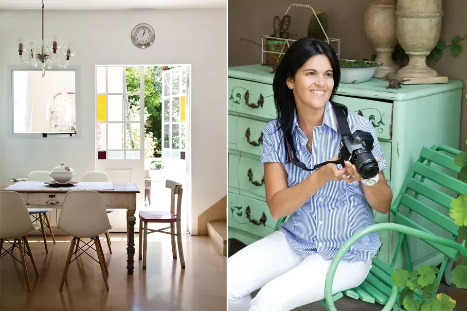 Lo primero que detectó cuando entró fue que desde el hall de ingreso había una visual lineal que dejaba ver la casa hasta el fondo. Decidió mantenerla y potenciarla. Jugadísima, y después de convencer a su marido, pintó las paredes de fucsia. "No le tengo miedo al color", dice. El ambiente central de la casa, muy luminoso, lo convirtió en su estudio. El protagonista es un mueble panadero que compró en un remate y al que le dejó la pátina original en rosa y verde. A su home office, como la llama, le agregó una mesa antigua, a la que solo le lavó la superficie y que hoy usa de escritorio, y una silla estilo Windsor.