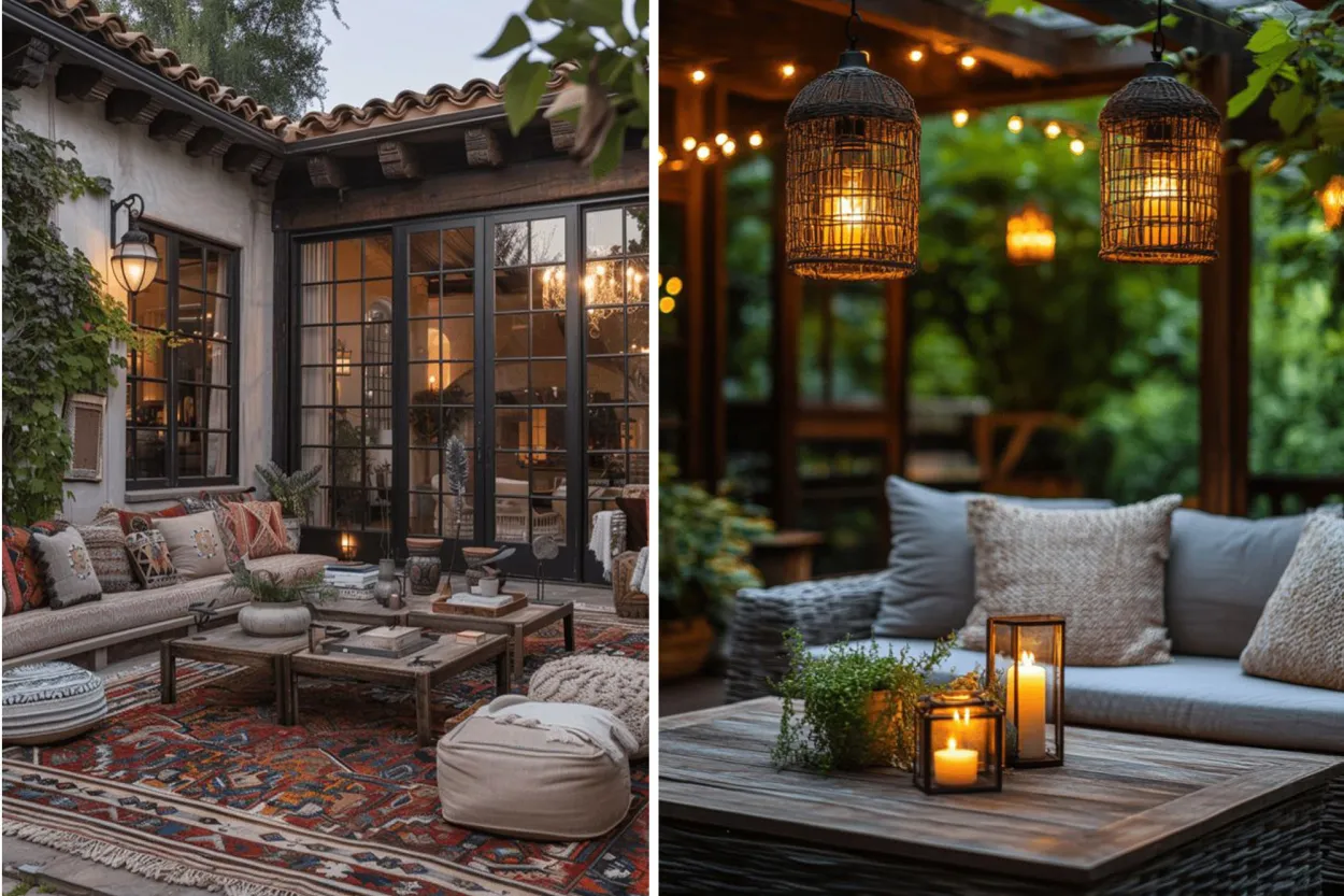 Guirnaldas cálidas, faroles colgantes o velas estratégicas crean una atmósfera mágica al caer la tarde. Ideal para cenas íntimas o momentos de relax. - Créditos: Pinterest