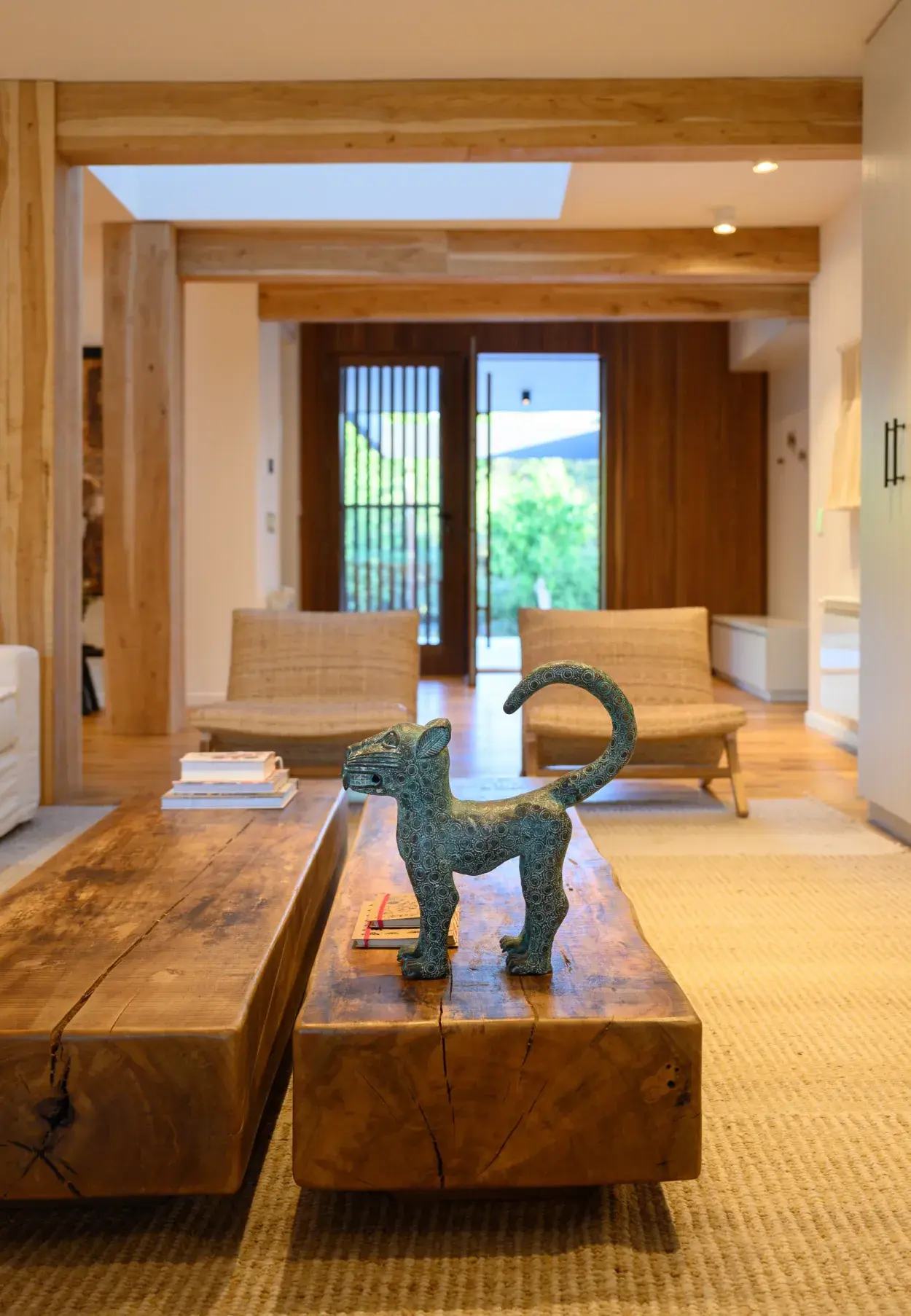“También sacamos el patio interno para transformarlo en una lucera. Así ganamos metros cuadrados vivibles y transitables”, destaca la arquitecta cordobesa. Sin embargo, por cuestiones vinculadas a la estructura dejaron solo dos columnas estructurales y reforzaron con vigas metálicas el resto de la casa. Las vigas a la vista fueron cepilladas y revestidas en madera. “Queríamos un efecto cálido, que la casa tuviera un estilo country”.