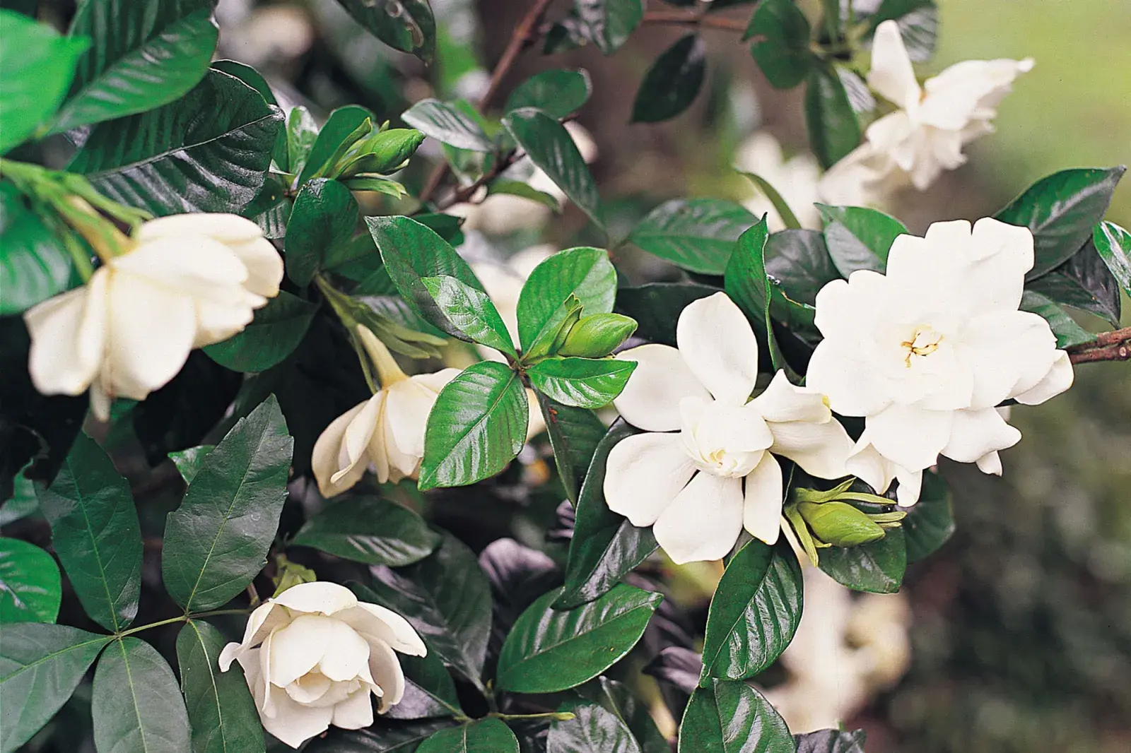 Las flores grandes y las hojas oscuras son la característica principal del jazmín del Cabo - Créditos: Gentileza Archivo JARDÍN