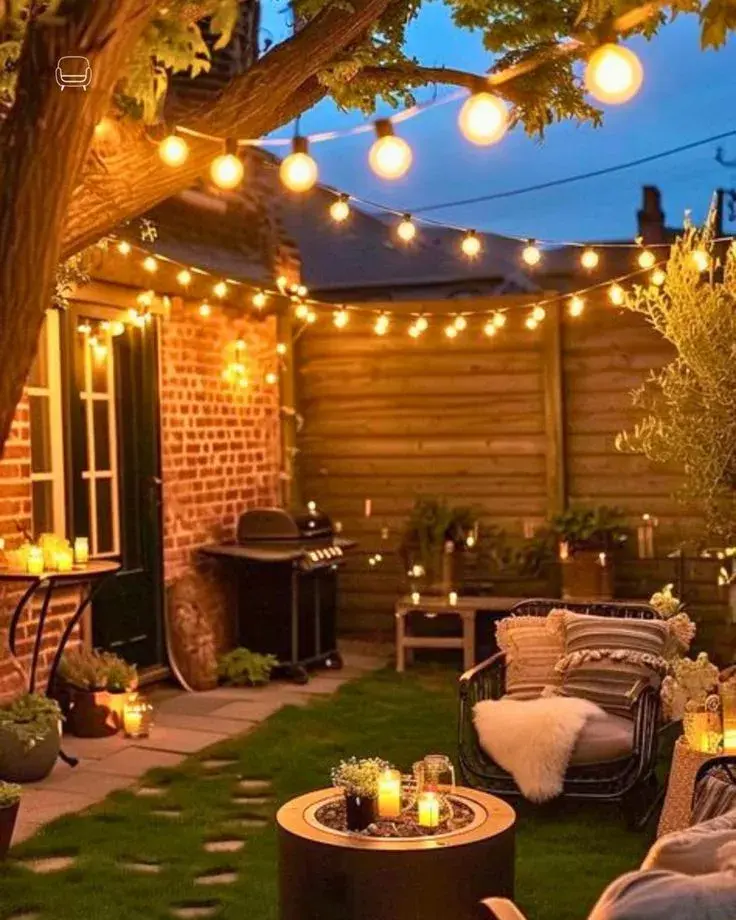 El recurso más efectivo: unas luces cálidas transforman cualquier espacio. Podés colgarlas de pared a pared, sobre una baranda o incluso armando un “cielo estrellado”. Son económicas y generan clima al instante.