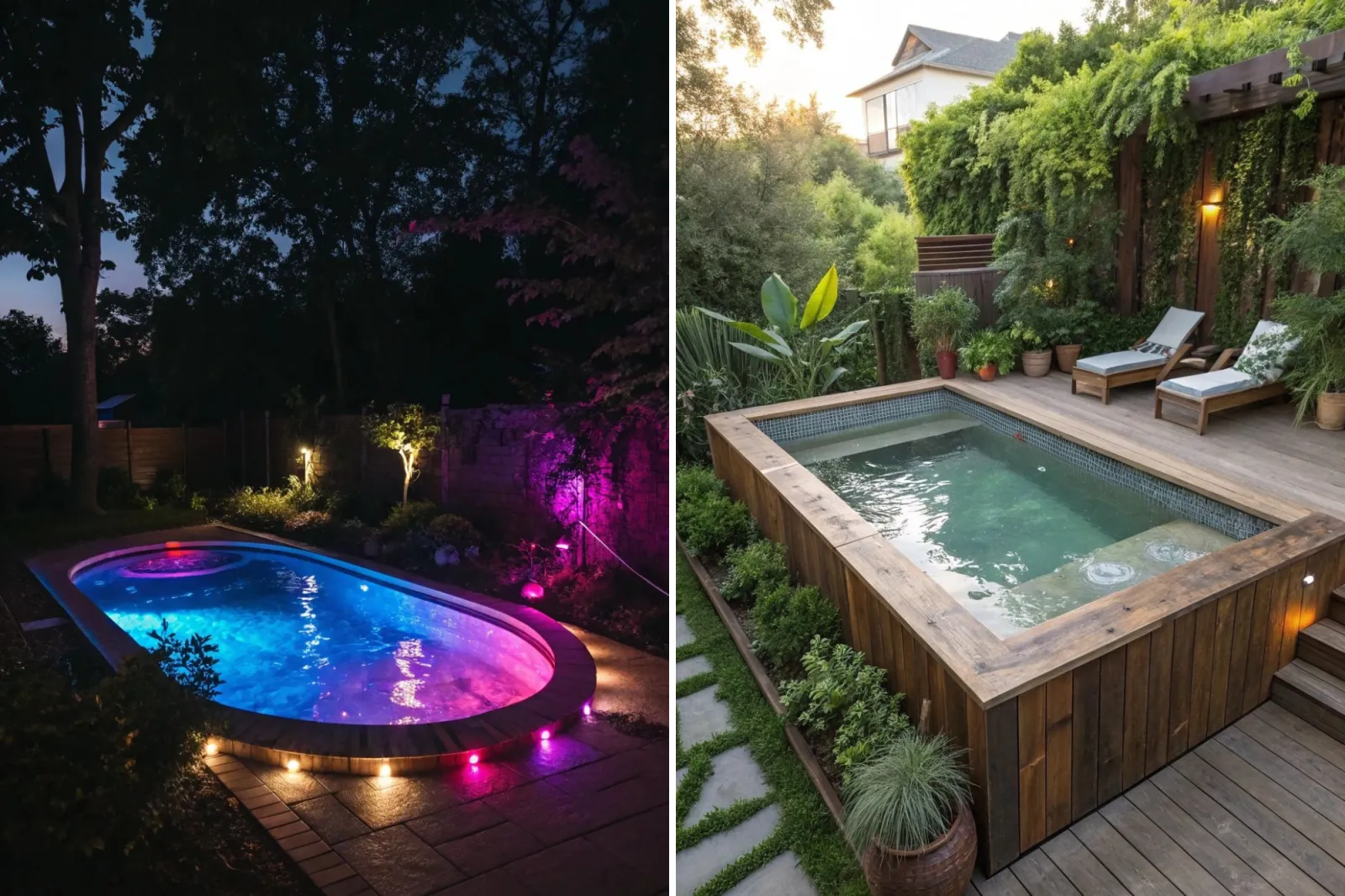 Incorporar luces sumergidas, faroles o tiras LED transforma la mini pileta en un rincón encantador al caer la noche. Elementos como piedras, macetas y mobiliario cómodo completan el ambiente, generando un espacio atractivo y funcional, ideal para relajarse o compartir momentos con amigos.