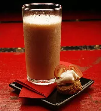 En una licuadora colocar el durazno pelado y cortado, el azúcar, el yogur, el vodka y el hielo. Licuar hasta conseguir un smoothie o licuado bien parejo. Servir bien frío. Se puede hacer de la fruta de estación que prefieras.