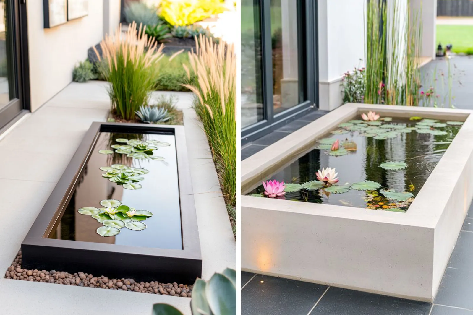 Añade plantas acuáticas como lirios, juncos o plantas tapizantes para darle un toque natural y ayudar a crear un ecosistema equilibrado. - Créditos: Pinterest
