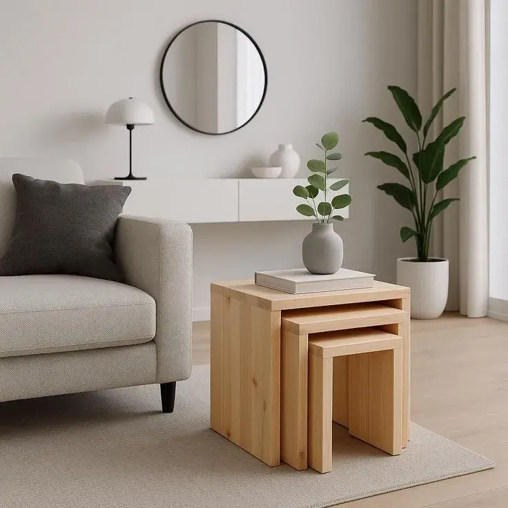 Los sets de mesas nido —una más grande con otra más pequeña que encaja debajo— son una excelente opción para viviendas con poco espacio: cuando no se usan, se anidan; cuando hay visitas, se despliegan.