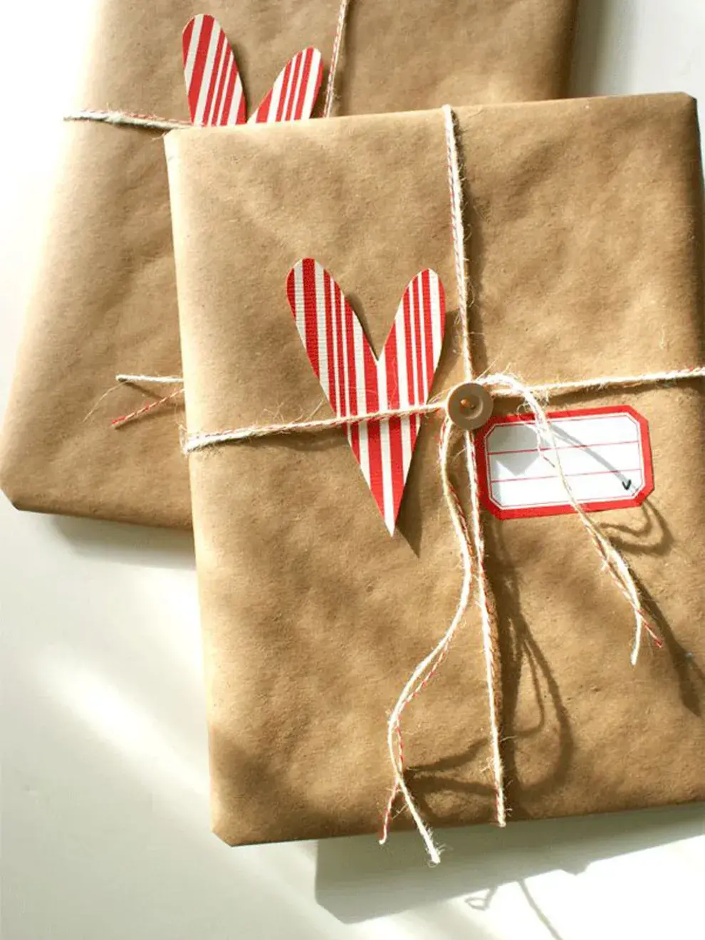 Una simple etiqueta puede elevar cualquier envoltorio. Podés escribir frases navideñas, dibujos, iniciales o estampados en cartón reciclado. Sumalas con clip dorado o cuerda natural.