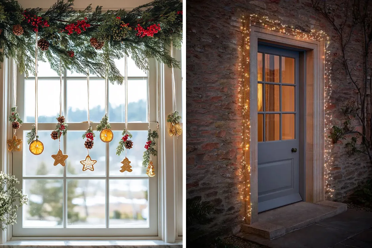 -Guirnaldas naturales: Hechas con ramas de pino, eucalipto o laurel, aportan un toque orgánico y fresco. Se pueden combinar con pequeños adornos o cintas rojas.