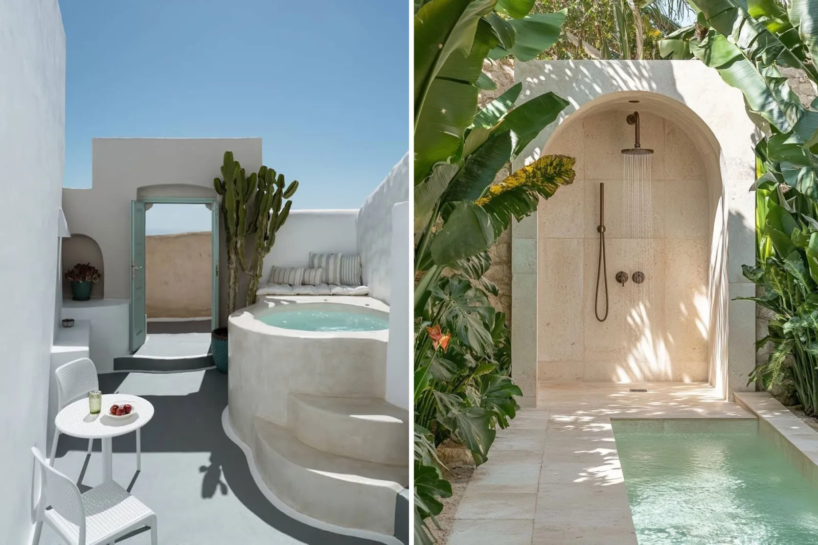 De estilo griego, una mini pileta en la terraza puede funcionar como un pequeño oasis deco - Créditos: Pinterest