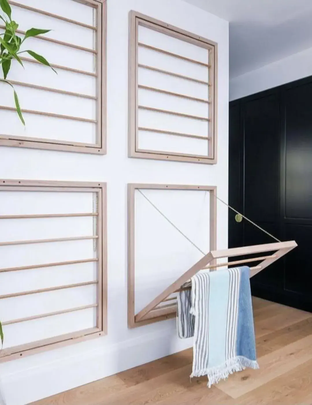 • Tenders plegables empotrados en pared: funcionan como un panel que, al abrirse, despliegan varillas. Cuando no se necesitan, pasan como un objeto decorativo.