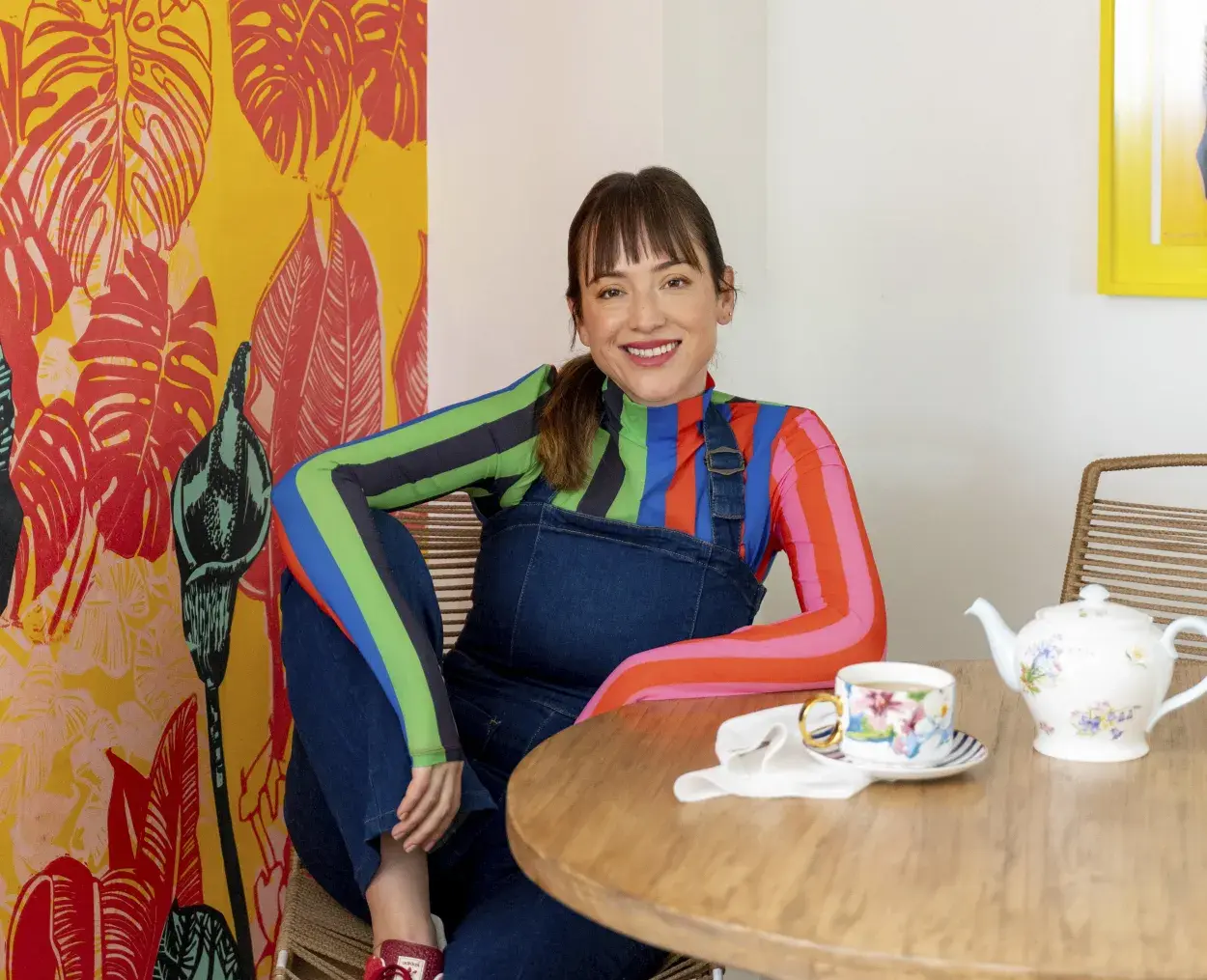 El diseño de la camisa de Sofi copia el de los cuadros: para ella moda y deco van de la mano. - Créditos: Cecilia Longar