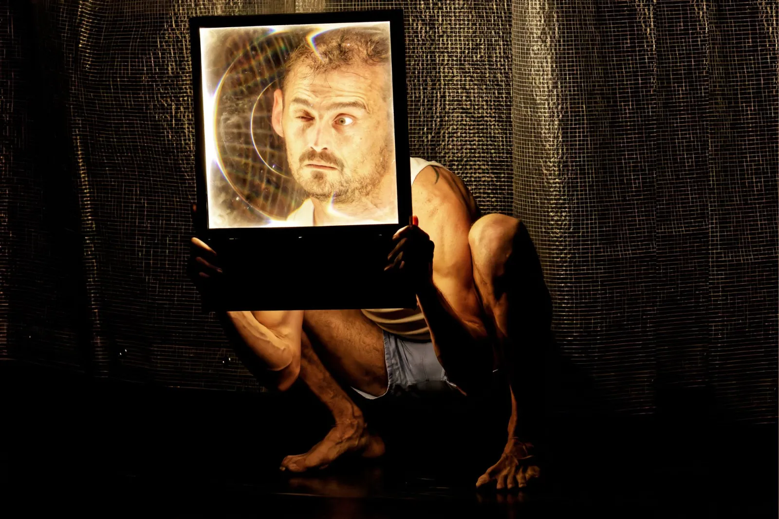 Luciano Rosso hace impactantes contorsiones y destrezas sobre el escenario, no ya como un desafío físico per se, sino principalmente al servicio de la expresividad. - Créditos: Gentileza Apocalipsync/ Paul Thollet