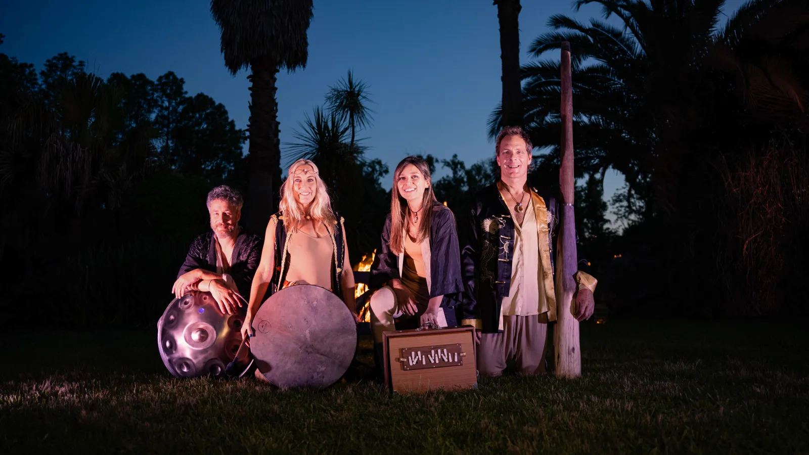 Venía con un gran deseo de crear un proyecto integrativo y colaborativo, sin dejar de lado lo que me representa desde el corazón: lo holístico, lo musical y lo performático. La inspiración llegó cuando Pablo —integrante de Gonga y director de la Escuela Argentina de Handpan— propuso abrir un show mío con gongs. A partir de ahí comenzaron a bajar las ideas: el proyecto se reveló solo, y orgánicamente convoqué a Pablo, Rodri y Pabla, que se sumaron con un “sí” rotundo y lo fueron enriqueciendo.