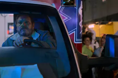 Diego Calva: ¡Uf! Creo que en el caso de Marcus no tuvo mucha alternativa. Tiene un profundo amor por la familia. Creo que es algo muy latino y muy mexa. Nunca le vas a dar la espalda a la familia y si te toca trabajar, te toca trabajar. Y también el orgullo de que haya un personaje, un integrante de la familia, que va a la universidad. "Bueno, vamos todos a chambear para que ella pueda ir a la universidad". Así que es esta verdadera historia —muy latina, muy mexicana— de salir adelante, de progresar. Ahora el pretexto es la ambulancia, pero en realidad, es la familia.