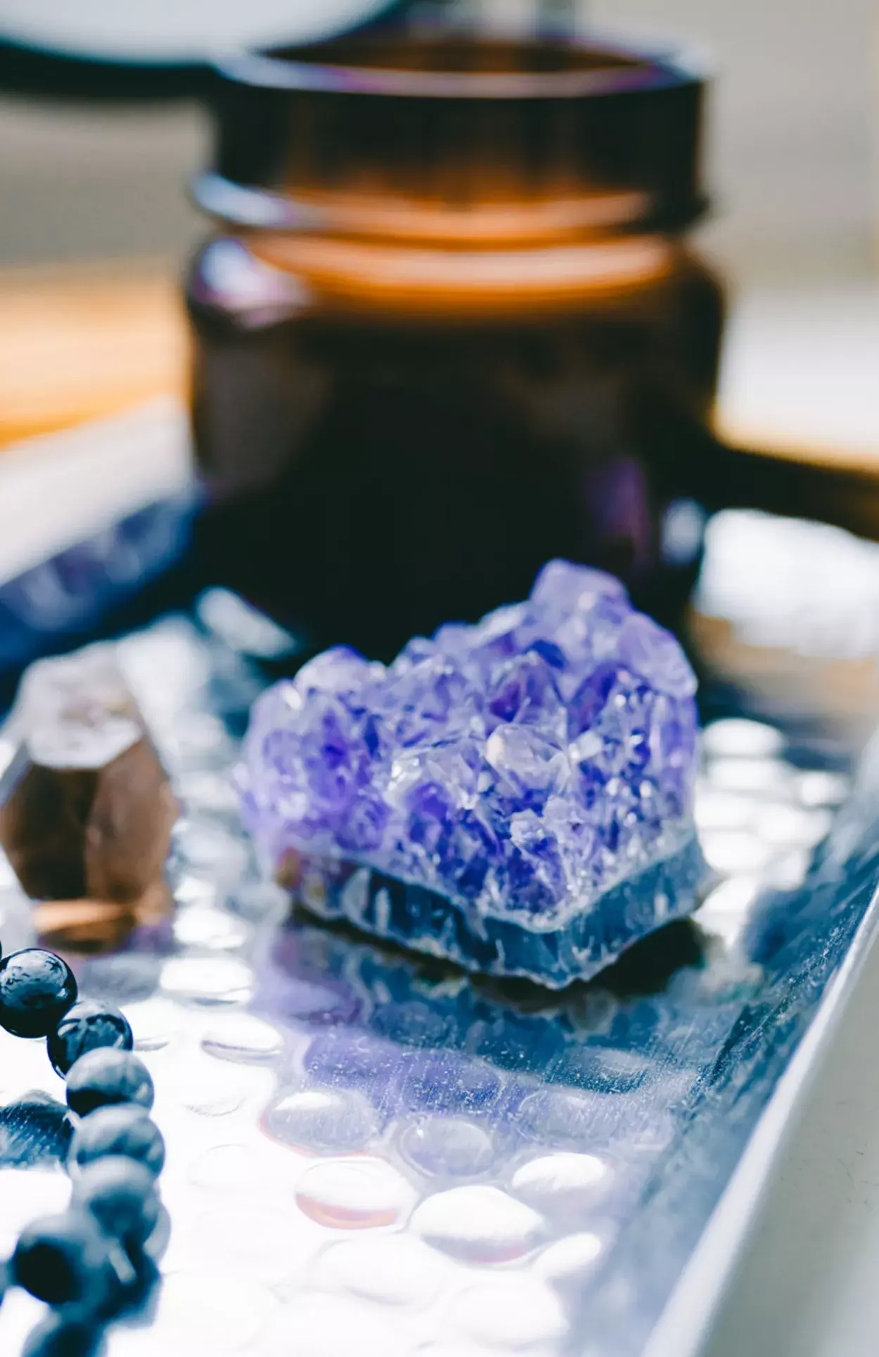 Colocá un paño o pañuelo como base. Siempre es bueno marcar el sector donde se van a ubicar estos objetos tan importantes con una pieza de tela. Te sugiero el color violeta como aliado que representa la transmutación, pero también valen telas de colores vibrantes que te gusten. Tratá de evitar el color negro porque absorbe mucha energía. Pueden además tener imágenes estampadas que se vinculen con los trabajos energéticos: lunas, signos del Zodíaco, flores.