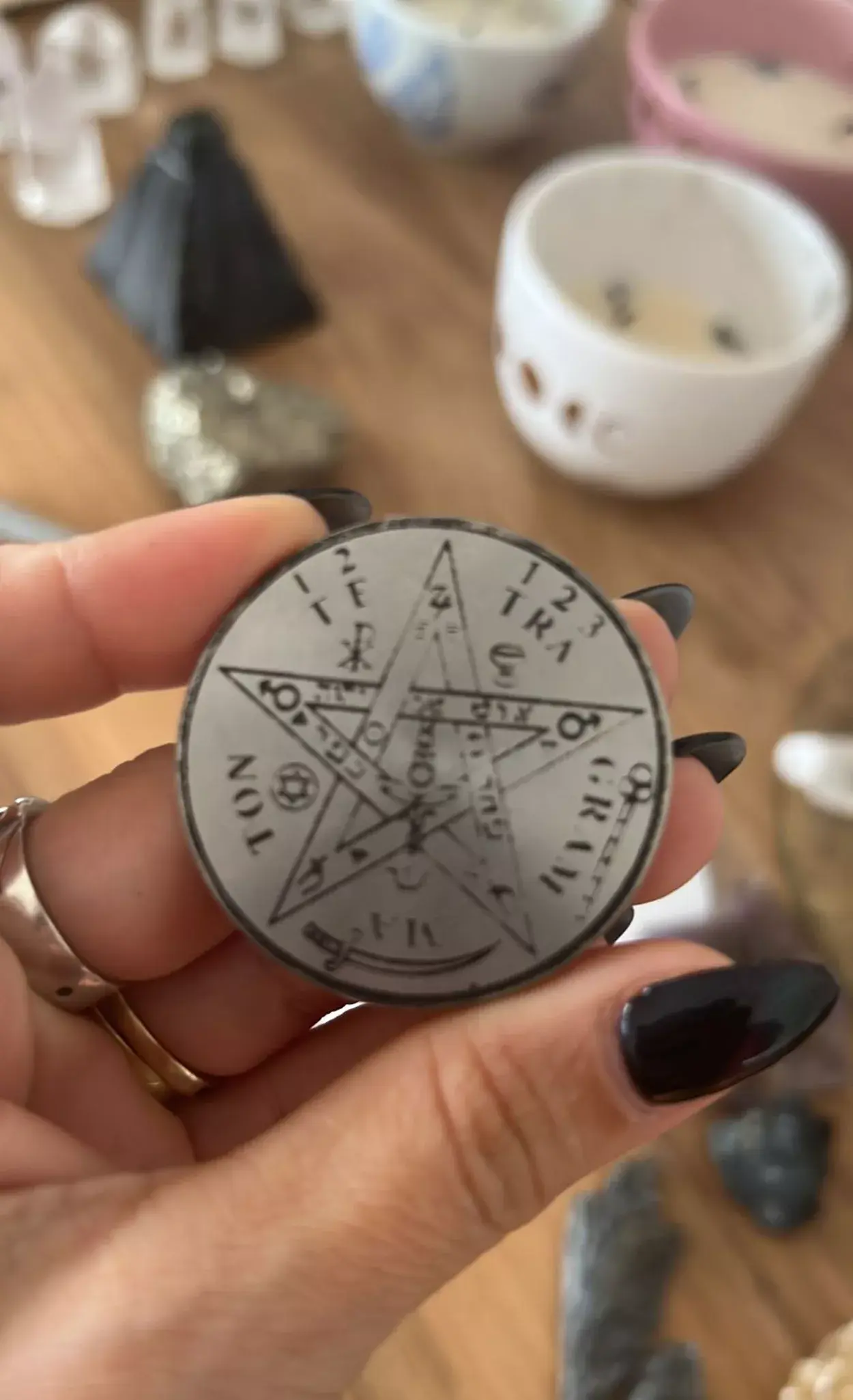 Pentáculo: es un círculo de protección que contiene un pentagrama con la punta hacia arriba. En esta forma, representa el éter o espíritu en conexión con lo Divino. Las otras cuatro puntas representan los cuatro elementos de la naturaleza en equilibrio con el éter. Es un símbolo de vida, amor, luz y búsqueda del conocimiento divino. “Podés utilizar este símbolo dibujándolo en un papel y sumándolo a tu altar para que proteja tu espacio o tu hogar”, propone Daniela.