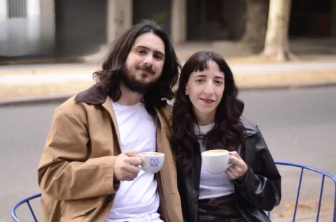 Ayelén Castro y Santiago Vallejo, creadores de este camino interactivo del café en La Plata. - Créditos: Gentileza